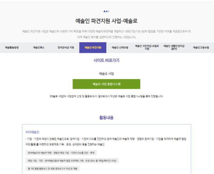 ​- 예술로 사업 통합시스템(https://goartist.kawfartist.kr)에서 확인 가능합니다.