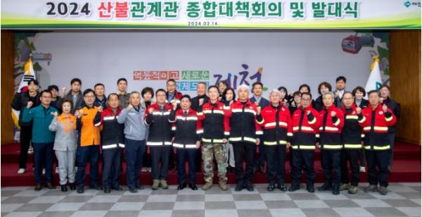 [singers news 씽어즈뉴스, 와보소기자] 제천시가 14일 김창규 제천시장 주재로 봄철 산불 유관기관 대책 회의 및 산불전문예방진화대 발대식을 개최했다.