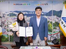 [singers news 씽어즈뉴스, 와보소기자] 삼척여성친화도시 시민참여단 부단장으로 활동 중인 최혜영씨가 여성친화도시 조성 및 확산에 기여한 유공자로 선정되어 여성가족부장관 표창을 수상했다. 전수식은 2월 14일 삼척시장 집무실에서 이루어졌다.