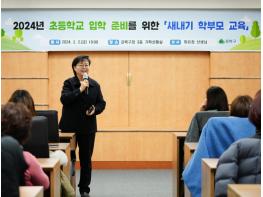 2일 구청 기획상황실에서 열린 초등입학 새내기 학부모 교육은 ‘두근두근 초등 1학년 입학준비’ 저자이자 유튜브채널 ‘어디든 학교’를 운영하는 하유정 교사가 맡아 학교 입학 준비와 학교생활 적응법을 소개해 호응을 얻었다.