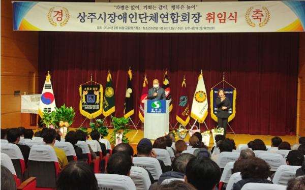 [singers news 씽어즈뉴스, 와보소기자] 상주시에서는 2024년 2월 16일 14시, 상주시청소년수련관 세미나실에서 상주시장애인단체 회장 및 회원 200여명이 참석한 가운데 상주시장애인단체연합회 회장 취임식을 개최했다.