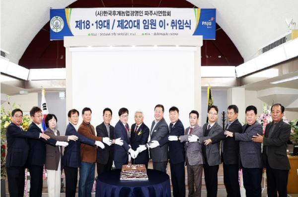 (사)한국후계농업경영인 파주시연합회는 2월 16일 조리읍 홍원연수원에서 파주시장 및 단체장, 조합장 등 80여 명이 참석한 가운데 제18·19대 정기화 회장과 제20대 김용덕 회장의 이취임식을 개최했다.