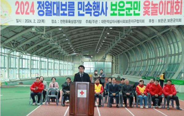 지난 22일 보은전천후보조육상경기장 일원에서 대한적십자봉사회 보은지구협의회(회장 김홍석) 주관으로 열린 2024 정월대보름 민속행사는 최재형 군수, 최부림 보은군의회의장, 박덕흠 국회의원 등을 비롯해 적십자 회원, 군민 등 500명이 참여한 가운데 지신밟기를 시작으로 1부 개회식, 2부 전통민속놀이인 윷놀이 대회로 진행됐다