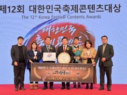 올해로 12회를 맞이한 대한민국 축제콘텐츠 대상은 (사)한국축제콘텐츠협회가 축제 콘텐츠 산업의 자긍심 고취와 지역축제가 세계적으로 발전할 수 있도록 독려하기 위해 개최하는 시상식으로 전문가의 심사를 거쳐 △명예의 전당 △축제경제 △축제글로벌명품 △축제콘텐츠 △축제예술 △축제관광 △축제프로그램 6개 부문 30개 축제와 특별상, 감독상 등 총 35개의 우수축제를 선정하고 시상했다.