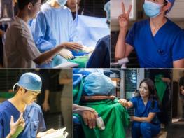 그런 가운데 공개된 사진은 다시 병원으로 돌아온 ‘닥터’들, 남하늘과 여정우의 수술실 비하인드를 담고 있다.