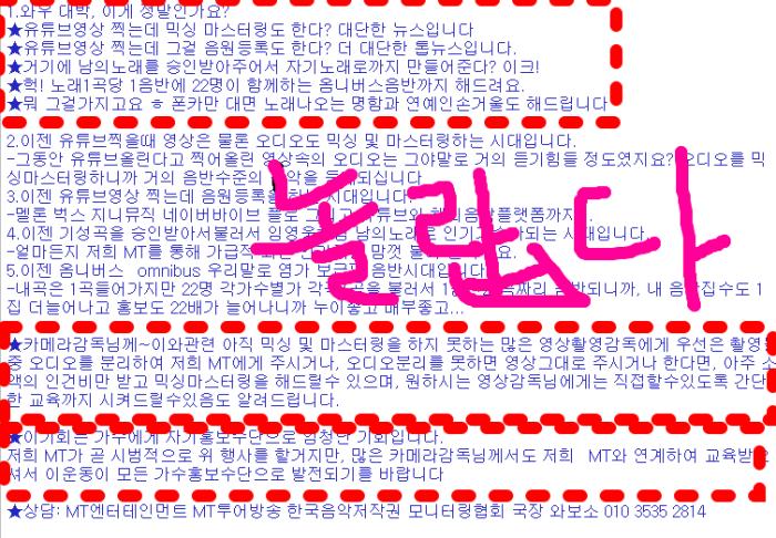 저희 MT가 곧 시범적으로 위 행사를 할거지만, 많은 카메라감독님께서도 저희 MT와 연계하여 교육받으셔서 이운동이 모든 가수홍보수단으로 발전되기를 바랍니다