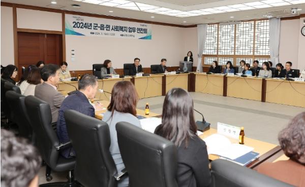 이날 연찬회는 군청 소회의실에서 사회복지업무 담당 공무원 40여 명이 참석한 가운데, 장애인·아동 등 분야별 사업계획과 함께 올해 달라지는 복지정책을 공유하고 다양한 의견을 청취하는 등 소통의 시간을 가지며 진행됐다.