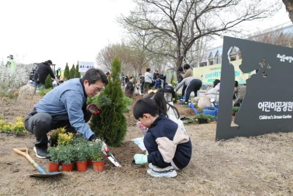 [singers news 씽어즈뉴스, 와보소기자] 서울 성동구가 식목일을 앞둔 지난 30일 중랑천 응봉역 인근에서 어린이 130여 명을 포함한 주민 300여 명이 나무심기 행사를 열어 ‘중랑천 어린이꿈정원’을 조성했다.