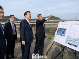 [singers news 씽어즈뉴스, 와보소기자] 윤석열 대통령은 4월 2일 오후 충남 공주시 옥룡동을 찾아 수해 현장을 둘러보고 복구 상황을 점검했다. 공주시는 작년 여름 집중호우로 인해 도로와 주택이 침수되고 공산성 성벽 일부가 무너지는 등 각종 피해가 발생했던 곳이다. 대통령은 작년 7월 수해 발생 직후 공주시 대학리 일원의 피해 현장을 찾아 주민들을 위로하고 복구 지원을 약속한 바 있다.