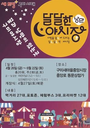[singers news 씽어즈뉴스, 와보소기자] 구미시는 4월 26일부터 6월 22일까지 매주 2회(금?토) 구미새마을중앙시장과 중앙로 동문상점가 일원에서 야시장을 운영한다.
