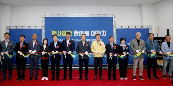 새로 지어진 다목적 어민회관에서 진행된 이날 행사에서는 경과보고와 감사패 수여, 주민대표의 기념사와 가세로 군수 등 주요 내빈들의 축사에 이어 사업의 마무리를 알리는 테이프 커팅이 진행됐다.