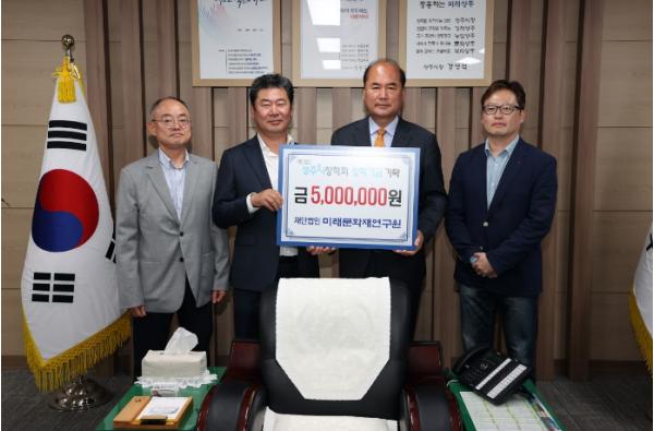 [singers news 씽어즈뉴스, 와보소기자] 재단법인 미래문화재연구원에서는 15일 상주시청을 방문하여 지역의 우수한 인재 육성을 위해 써달라며 상주시장학회에 장학금 500만 원을 기탁했다.