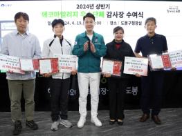 [singers news 씽어즈뉴스, 와보소기자] 도봉구가 4월 19일 2024년 상반기 서울시 에코마일리지 우수단체로 선정된 도봉구 지역 업체 4개소에 감사장을 수여했다.