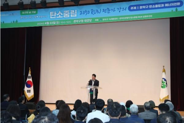 또, 오전에는 관악구청 강당에서 ‘탄소중립 RUN! 친환경 실천특강’이 열렸다. ‘관악구와 구민이 함께하는 탄소중립과 에너지 전환’이라는 주제로 로컬에너지랩 대표인 신근정 강사의 강의가 진행됐다. 강의에는 관악구 그린리더 동아리 등 주민 100여 명이 참석해 큰 호응을 보냈다.