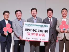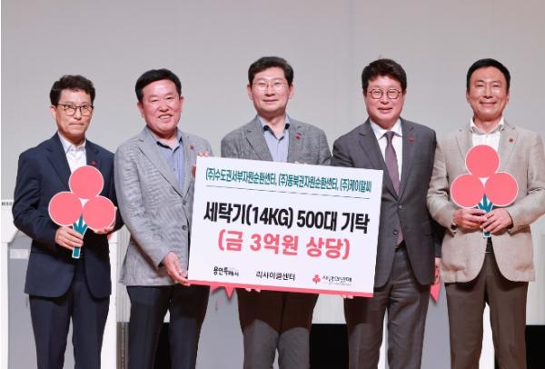 ‘아름다운 동행’이라는 주제로 열린 이 행사에서 ‘리사이클센터’는 용인특례시의 저소득층 가정과 사회복지시설에 신형 세탁기 500대(3억원 상당)를 기부했다. 세탁기는 경기사회복지공동모금회를 통해 저소득층과 사회복지시설에 순차적으로 설치될 예정이다.
