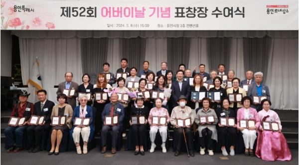 [singers news 씽어즈뉴스, 와보소기자] 용인특례시는 지난 8일 ‘제52회 어버이날’을 맞아 시청 컨벤션홀에서 효행자 18명과 장한 어버이 25명에게 표창장을 수여했다.