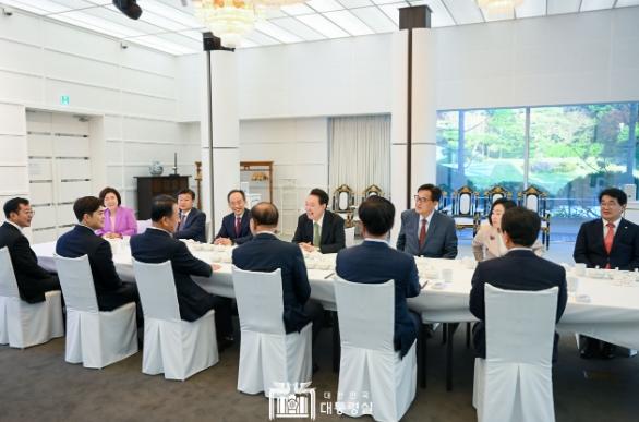[singers news 씽어즈뉴스, 와보소기자] 윤석열 대통령은 5월 13일 관저에서 국민의힘 비상대책위원회(위원장 : 황우여) 위원들과 상견례를 겸한 만찬을 함께 했다.