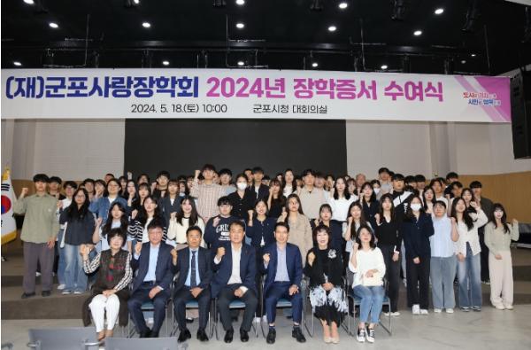 [singers news 씽어즈뉴스, 와보소기자] 지난 5월 18일 토요일 오전 10시에 군포시청 대회의실에서 (재) 군포사랑장학회 2024년 장학증서 수여식이 진행됐다.