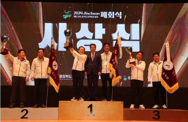 한편 이번 대회 전 종목에 325명의 선수가 출전한 진천군은 금 47개, 은 19개, 동 20개 등 총 86개의 메달을 획득하며, 종합점수 29,346점으로 역대 최고점수를 기록, 26,688점의 청주시를 2,658점 차이로 제치고 종합우승을 차지했다.