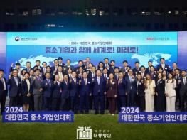 [singers news 씽어즈뉴스, 와보소기자] 윤석열 대통령은 5월 23일 용산 대통령실 잔디마당에서 열린 ?2024 대한민국 중소기업인대회?에 참석해 중소기업인들과 소통의 시간을 가졌다. 대통령은 2022년부터 올해까지 3년 연속 대통령실로 중소기업인들을 초청해 ‘중소기업인대회’를 개최하면서 중소기업 지원·육성에 대한 의지를 나타냈다.