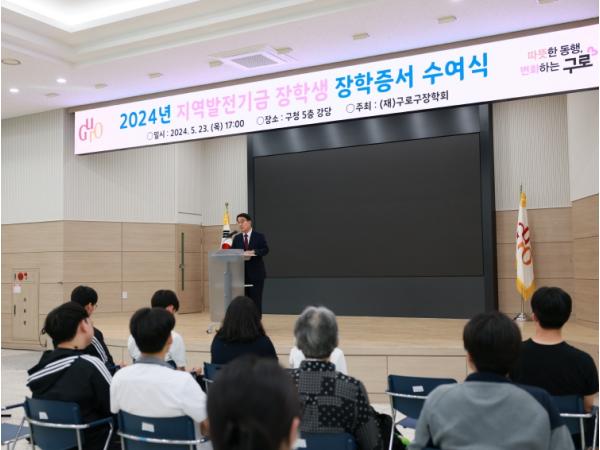 [singers news 씽어즈뉴스, 와보소기자] 구로구가 지난 23일 구청 강당에서 구로구장학회 장학증서 수여식을 개최했다.