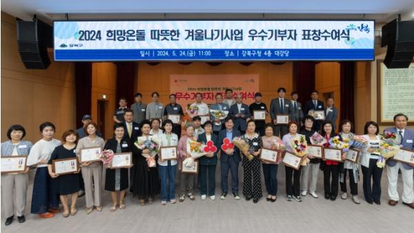 [singers news 씽어즈뉴스, 와보소기자] 서울 강북구는 지난 5월 24일 구청 대강당에서 ‘2024 희망온돌 따뜻한 겨울나기 우수기부자 표창식’을 개최하고 총 39명에게 표창장 등을 수여했다.