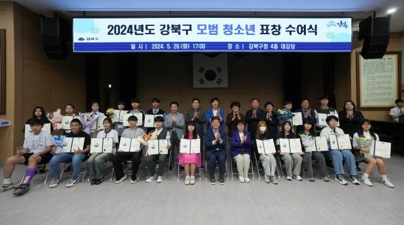[singers news 씽어즈뉴스, 와보소기자] 서울 강북구는 5월 청소년의 달을 맞아 지난 28일 구청 대강당에서 '2024년 강북구 모범 청소년 표창 수여식'을 개최했다고 밝혔다.