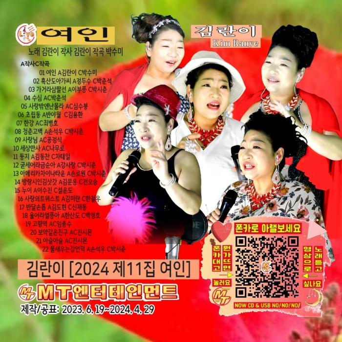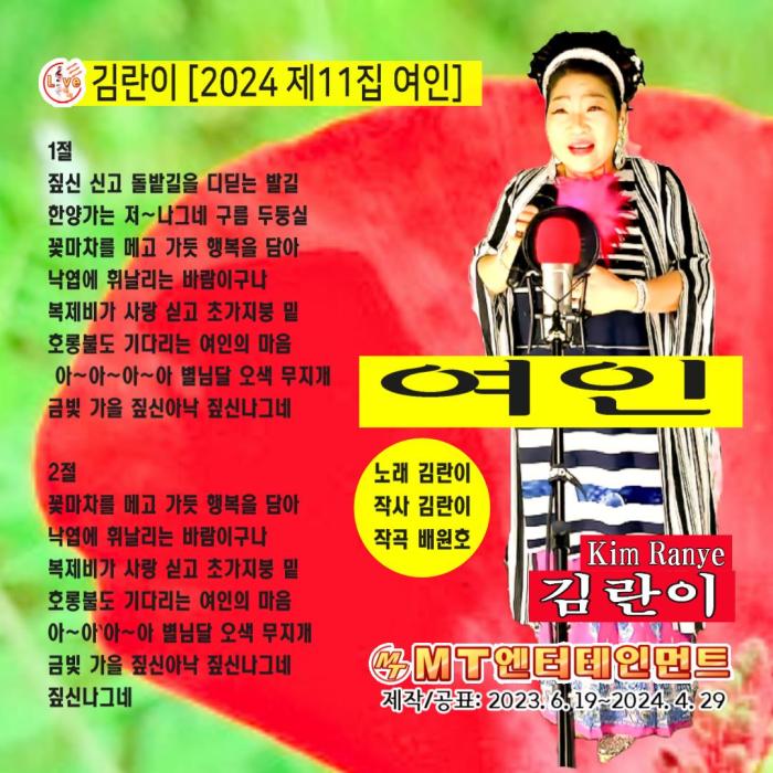 앨범명 "김란이의 2024 제11집 여인"이 2024.6.5 정오에 발매되었습니다