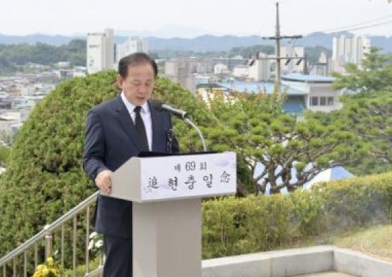 [singers news 씽어즈뉴스, 와보소기자] 문경시는 6월 6일 제69회 현충일을 맞아 . '일상 속 살아있는 보훈, 모두의 보훈'이라는 주제로 돈달산 충혼탑에서 추념식 행사를 거행했다.