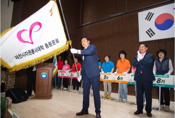 이날 행사에는 김창규 제천시장, 이정임 제천시의회 의장을 비롯한 주요 내빈과 자원봉사대학 총동문회 회원 등 총 200여 명이 참석했으며, 1부에서는 자원봉사 문화 확산 및 활성화에 기여한 유공자 표창이 있었으며, 2부에서는 (사)한국교육협회 박인옥 원장의 ‘웃음으로 삶의 긍정적인 에너지 충전을 위한 기술’이라는 주제의 강연이 있었다.