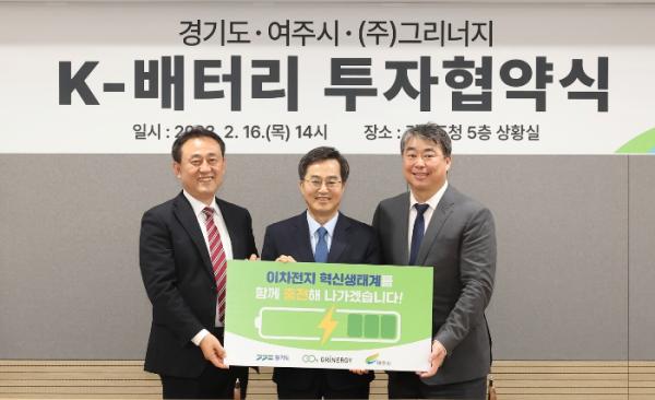 지난해 1월에는 세계 최대 산업용 가스 생산업체인 린데(Linde·미국)의 평택 생산공장에 1천500억 원 규모의 증액 투자를 유치했고, 3개월 뒤 미국 본사에서 김지사는 산지브 람바(Sanjiv Lamba) 린데그룹 최고경영자(CEO)와 만나 경기도에 대형 수소차량용 충전시설 설치와 반도체 공정용 가스 양산 확대를 위해 5천억 원 추가 투자를 약속받았다. 지난해 2월에는 이차전지 신소재기업 ㈜그리너지와 1천억 원 규모 K-배터리 설비 협약을 체결해 규제중첩지역인 여주에 미래 신산업 기지를 구축하고 있다.