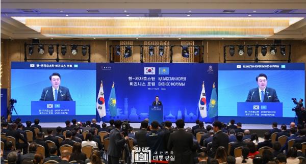 대통령은 기조연설에서 1992년 수교 이래 카자흐스탄은 중앙아시아에서 한국의 최대 교역국이자 투자국이 됐다며, 상호 보완적인 산업구조를 가진 한국과 카자흐스탄은 경제협력의 지평을 더욱 넓혀 나가야 한다고 강조했다.