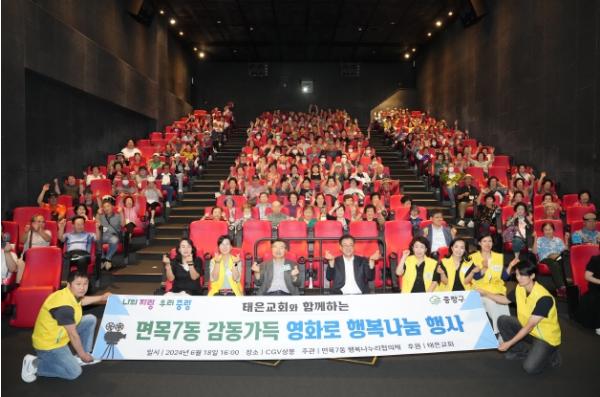 [singers news 씽어즈뉴스, 와보소기자] 중랑구 면목7동 행복나누리협의체와 태은교회가 18일 취약계층 주민들을 위한 무료 영화관람 사업인 ‘감동가득 영화로 행복나눔’ 행사를 개최했다.