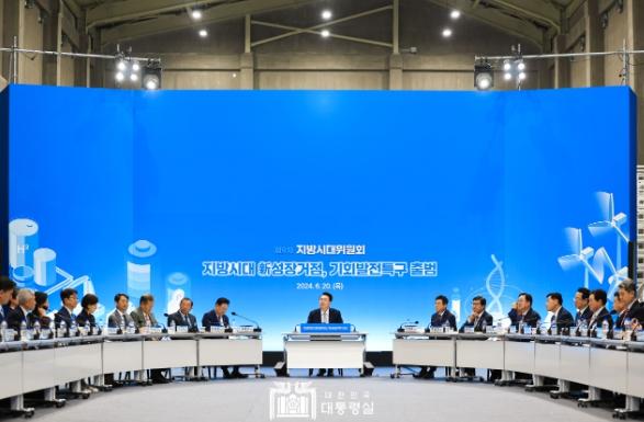 [singers news 씽어즈뉴스, 와보소기자] 윤석열 대통령은 6월 20일 오후 포항 블루밸리산단 이차전지종합관리센터에서 개최된 ?제9차 지방시대위원회? 회의를 주재했다. 오늘 회의는 윤석열 정부의 국정 목표인 ‘대한민국 어디서나 살기 좋은 지방시대’ 구현의 핵심 과제인 기회발전특구를 최초로 지정하기 위해 개최됐다.