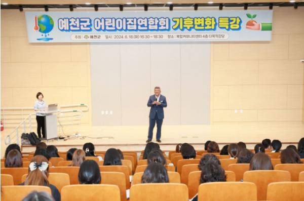 [singers news 씽어즈뉴스, 와보소기자] 예천군은 18일 복합커뮤니티센터 4층 다목적강당에서 관내 어린이집 원장과 교사들을 대상으로 ‘기후위기 특강’을 진행했다.