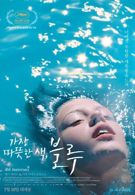 이번에 공개한 '가장 따뜻한 색, 블루' 10주년 기념 포스터는 파란 물감에 물든 한 폭의 수채화처럼 아름다운 명장면을 담아내어 영화에 기대감을 고조시킨다.