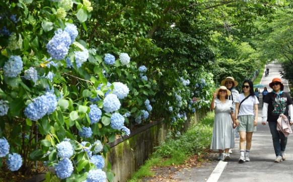축제장에서는 ‘전국 화훼1번지 강진’이라는 명성에 걸맞게 형형색색의 수국이 방문객들의 감성을 자극한다.