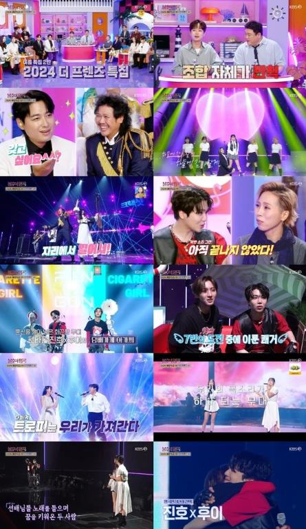 지난 29일(토) 방송된 KBS2 ‘불후의 명곡’ (연출 박민정 박형근 김성민 박영광) 664회는 ‘2024 더 프렌즈’ 특집으로 황금 보컬로 이뤄진 김다현X스미다 아이코, 육중완밴드X크랙샷, 펜타곤 진호X후이, 알리X김동현, 솔지X나비의 무대가 차례로 펼쳐지며 우열을 가리기 힘든 박빙의 대결을 펼쳤다.