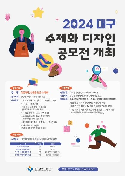 [singers news 씽어즈뉴스, 와보소기자] 대구 중구는 참신한 수제화 디자인 아이디어를 발굴해 수제화산업에 활기를 불어넣기 위해 7월 1일부터 7월 31일까지 2024년 수제화 디자인 공모전을 개최한다.