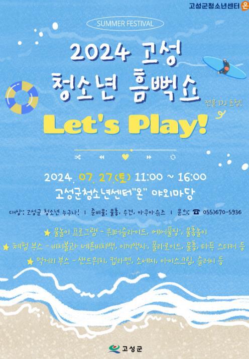 [singers news 씽어즈뉴스, 와보소기자] 경남 고성군은 오는 27일 오전 11시부터 오후 4시까지 고성군 청소년센터 온 야외마당에서 2024년 제2회 고성군 청소년 어울림마당의 일환으로 ‘2024 고성 청소년 흠뻑쇼’를 개최한다고 밝혔다.