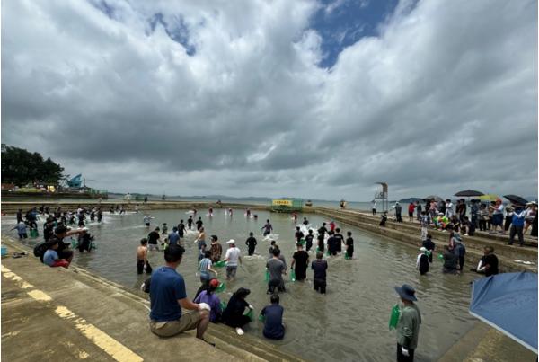 [singers news 씽어즈뉴스, 와보소기자] 전남 함평군이 20일 돌머리해수욕장에서 뱀장어 잡기 체험 행사를 개최해 관광객들로부터 큰 호응을 얻었다.
