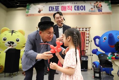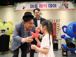 이날 공연을 이끈 마술사는 다양한 마술을 펼치며 어린이의 호기심을 자극하고 웃음과 탄성을 자아냈다. 또한 박강수 마포구청장도 마술사를 도와 풍선을 활용한 마술을 선보이며 즐거운 시간을 함께했다.