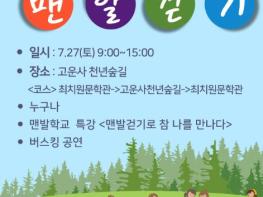 [singers news 씽어즈뉴스, 와보소기자] 의성군은 오는 7월 27일 최치원문학관 및 고운사 일원에서 천년숲길 맨발걷기 행사를 개최한다고 밝혔다.