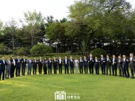 본격적인 만찬에 앞서 대통령과 참석자들은 파인그라스 잔디마당에서 당정 결속을 다지는 의미로 다함께 손을 맞잡고 사진을 찍고, “국민의힘 화이팅”을 외치며 또 한번 촬영을 했다.