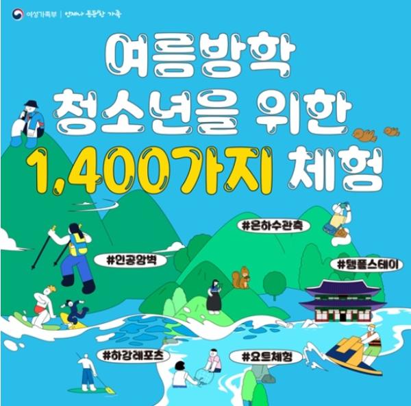 은하수관측, 인공암벽, 템플스테이, 요트체험 등 국립청소년수련원과 지역 청소년수련시설에서 1,400여 개 청소년 체험프로그램을 운영합니다!