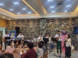 이날 공연에는 고령친화도시 동구에서 노인 여가 복지 지원 사업 일환으로 추진 중인 ‘동구 백년동아리 통기타반’이 뜻을 모아 그동안 갈고 닦은 연주 솜씨를 발휘했다.