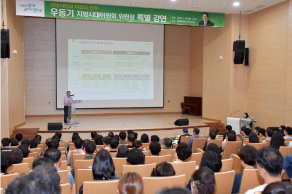 우동기 위원장은 이날 특강에서 △지방의 현실 △역대 정부의 균형 발전 정책 △지방시대 비전과 전략 △지방시대 중점 추진 과제 등의 내용으로 ‘어디에 살든 균등한 기회를 누리는 지방시대’라는 비전을 어떻게 실현해 나갈지 이야기했다.