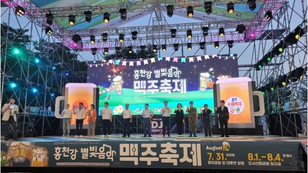홍천강 별빛음악 맥주축제의 본 행사 기간 중 8월 1일에는 제41회 홍천군민의 날 행사가 개최됐으며, 이어진 오후 7시 개막식에는 신영재 홍천군수, 박영록 군의장, 권혁동 육군 제11기동사단장, 이영욱·홍성기 도의원, 전명준 홍천문화재단 이사장, 김성운 홍천경찰서장, 김숙자 홍천소방서장 등 지역 기관단체장뿐만 아니라 육동한 춘천시장, 이영림 춘천지검장, 최성현 강원관광재단 대표 등도 함께 했다.