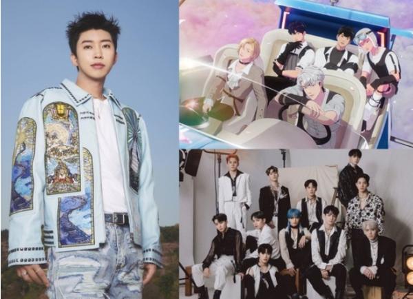 세븐틴(Seventeen), 스트레이 키즈(Stray Kids), 플레이브(PLAVE), 제로베이스원(ZEROBASEONE), 투모로우바이투게더(TOMORROW X TOGETHER), 에이티즈(ATEEZ), 웨이션브이(WayV), 라이즈(RIIZE), 앤팀(&TEAM), 템페스트(TEMPEST), 더뉴식스(THE NEW SIX), 엔하이픈(ENHYPEN), 슈퍼주니어(SUPER JUNIOR),