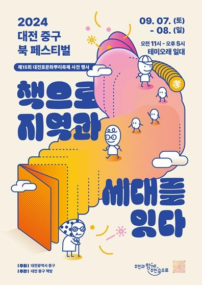 제15회 대전효문화뿌리축제 사전 행사로 개최하는 '중구 북 페스티벌'은 ‘책으로 지역과 세대를 잇다’라는 주제로 책을 통해 이웃과 만나고 세대 간의 생각을 공유함과 동시에 가족과 뿌리의 의미를 돌아볼 수 있는 다양한 프로그램으로 진행된다.